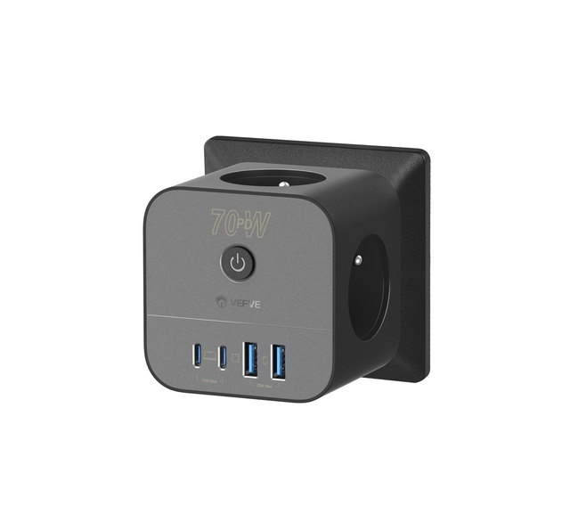 VEFVE Chargeur Rapide USB C 70W, Prise Multiprise Cube 7-en-1 avec Interrupteur